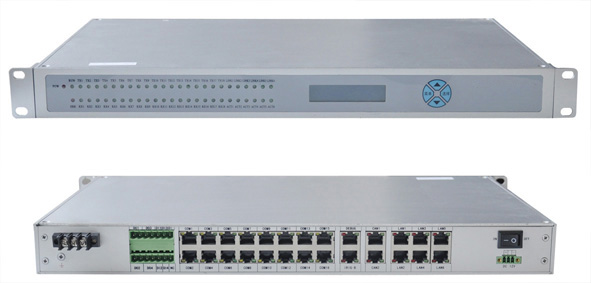 4. 软件自由配置三合一的RS-232/422/485串口。支持18串口、4个10M/100M自适应以太网口和两个光纤接口。